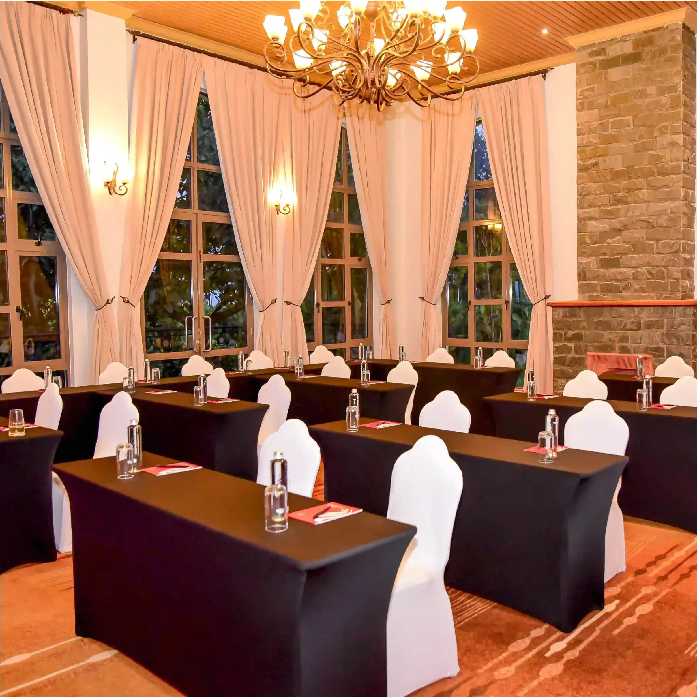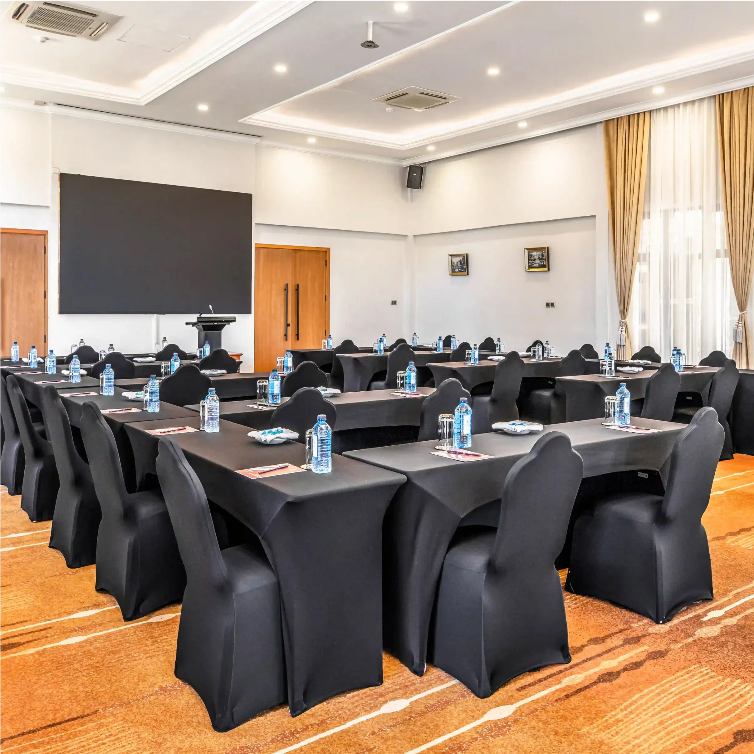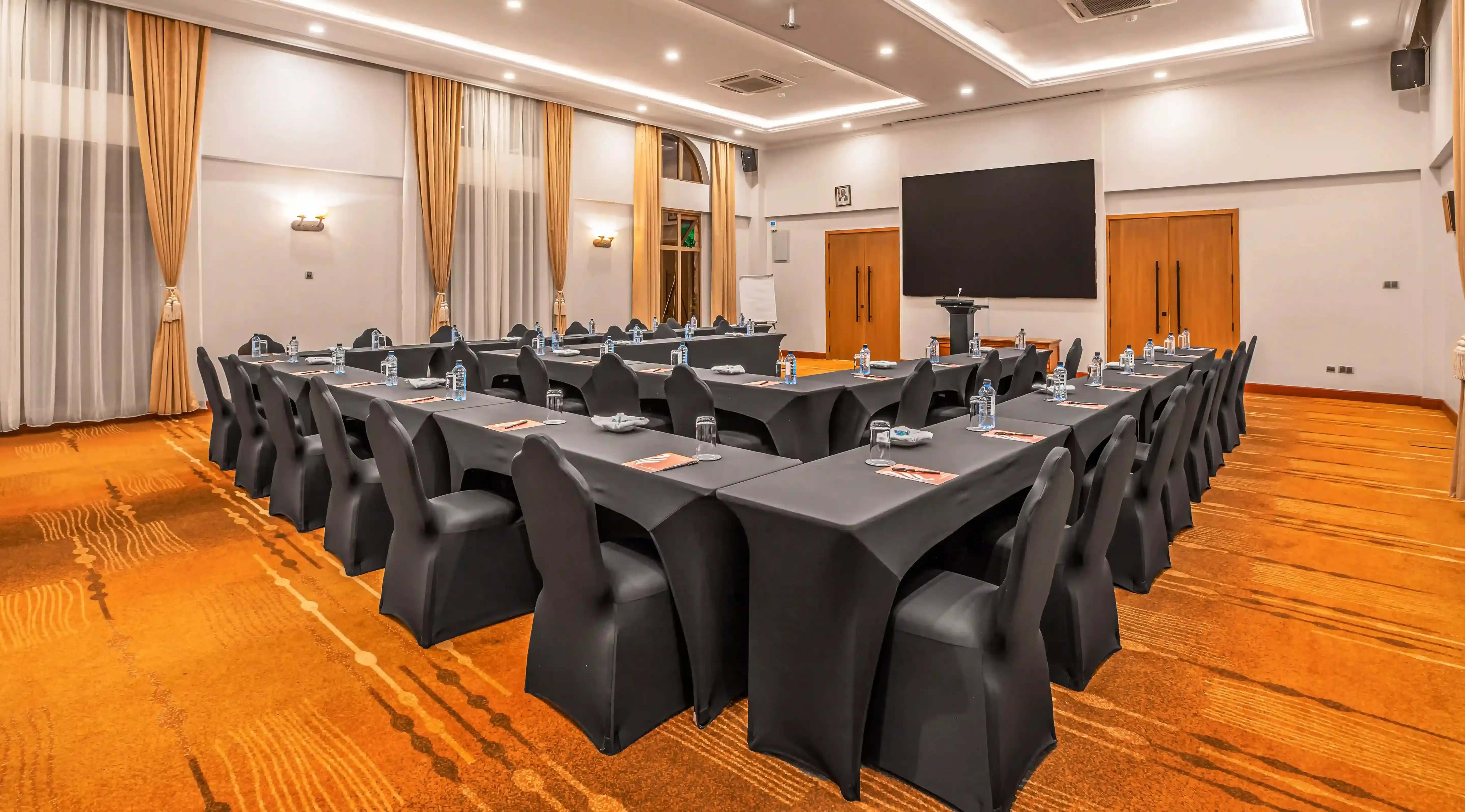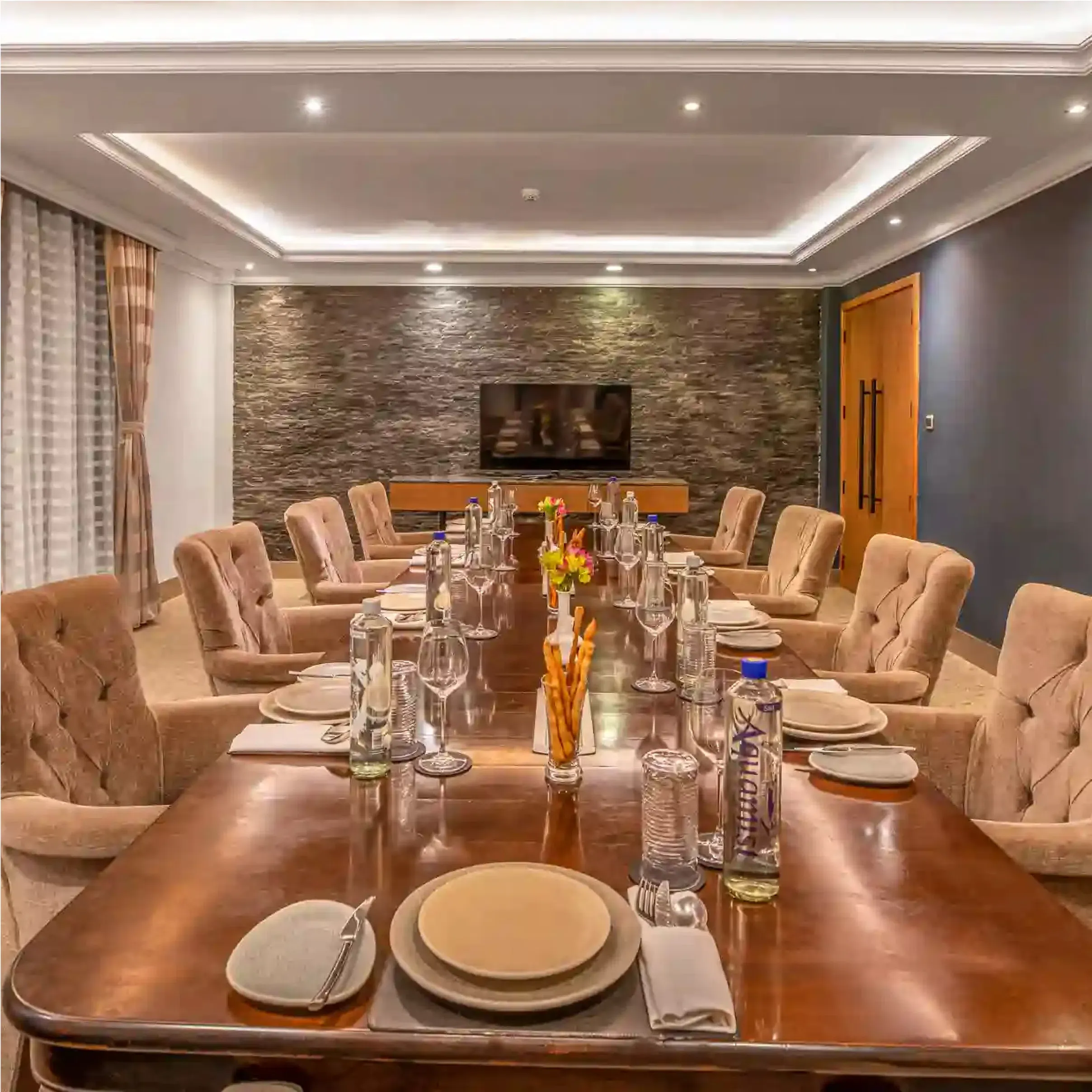 Host your next conference in our stunning boardroom conference room, where elegance meets functionality. Bathed in natural light from grand windows and adorned with sophisticated décor, this spacious venue provides a refined setting for corporate meetings, workshops, and executive events. With seamless setup, impeccable service, and a serene ambiance, your gatherings are set for success.